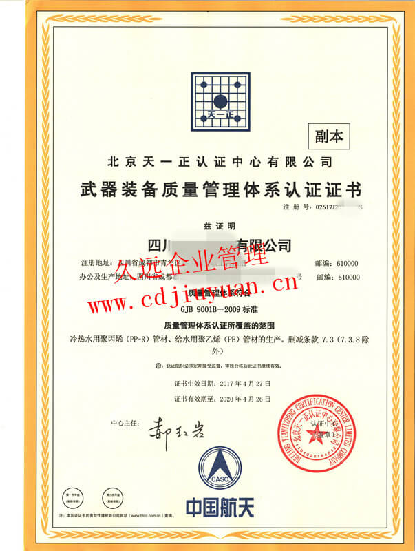 武器裝備質(zhì)量管理體系認(rèn)證證書(shū)